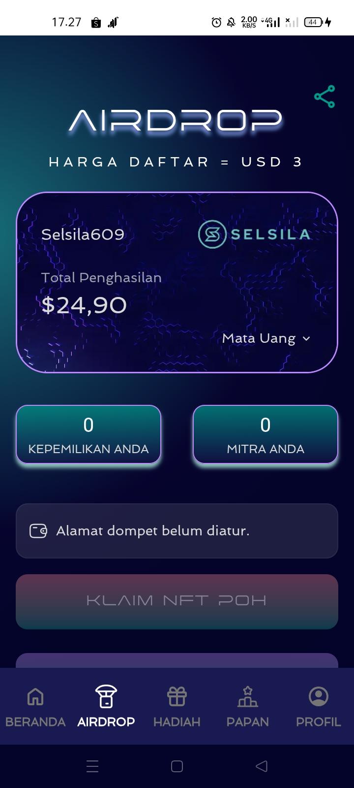 UNTUK WD KE DOMPET PERLU BIAYA GASFEE ( WD BARU BISA SETELAH TGL 14 DESEMBER 2025 )